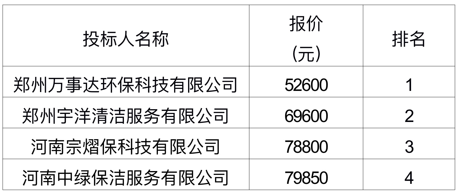根据询价最低价中标原则,询价小组一致同意郑州万事达环保科技有限公司以最低价中标,报价金额:52600元。